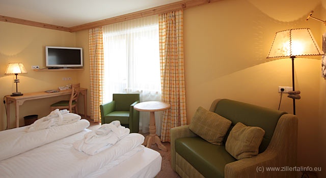 Wyposażone są rustykalnie w jedno łóżko małżeńskie oraz rozkładaną sofę i dodatkowe łóżko pojedyncze, przyjemne meble, łazienkę z toaletą, Sat-TV. Z balkonu rozciąga się widok na lodowiec Hintertux.